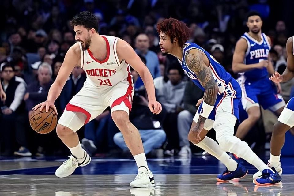 本场比赛中,火箭的先发中锋阿尔佩伦-申京(Alperen Sengun)的表现实在是很不理想。申京全场出场37分33秒,投篮15中5,三分线外2中1,罚球7中2,得到了13分8篮板7助攻2抢断2盖帽的准三双数据,还有1次失误和2次犯规,正负值-18。申京在进攻端的效率实在是惨不忍睹,他在对手内线完全不能够起到基本的支持,他的得分能力完全没有发挥出来,甚至他的罚球命中率也是令人非常失望的。申京在防守端的表现也是很不理想的水平,可以说是被乔尔-恩比德(Joel Embiid)各种打爆。申京的状态很不理想,但是到了比赛最后一节,他还是被球队留在了场上,这就显得令人非常无语了。如果申京和小贾巴里-史密斯(Jabari Smith Jr.)这两个表现一塌糊涂的球员没有留在场上,火箭可能就已经取得胜利了。